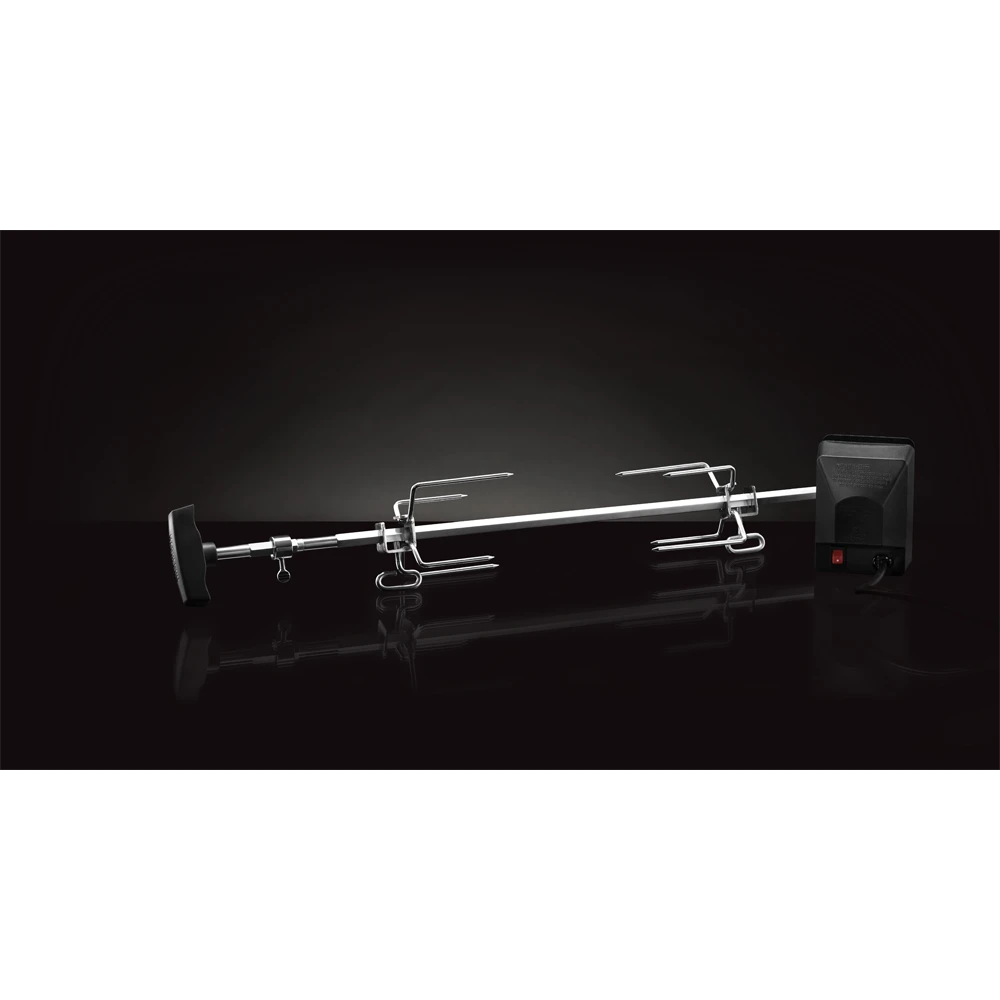 Draaispit-set in Heavy Duty uitvoering: Met 2 RVS vleesvorken, RVS draaispit (vierkant) en motor met zwarte kunststof behuizing. Geschikt voor de Freestyle® serie.