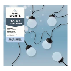 Lumineo Budget Feestverlichting Lichtsnoer – Bolvorm – 950cm – 20 LEDS – Koel Wit/Blauw