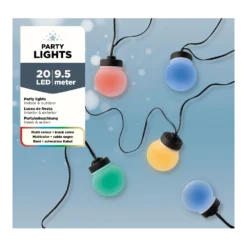 Lumineo Budget Feestverlichting Lichtsnoer – Bolvorm – 950cm – 20 LEDS – Multi
