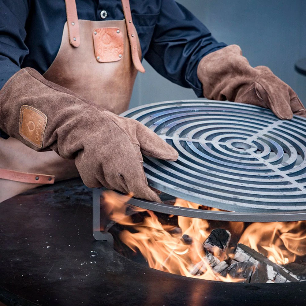 Dit stevige, tweedelige grillrooster is ideaal om grotere stukken vlees op het OFYR kooktoestel te bereiden. Plaats het rooster en de grillhouder direct boven de vlammen voor een typische, rokerige smaak. Wanneer de grill wordt gebruikt blijft de kookplaat vrij, waardoor er tegelijkertijd andere gerechten klaargemaakt kunnen worden. Door de hoogte van de grillhouder kan er gemakkelijk extra hout aan het vuur toegevoegd worden.