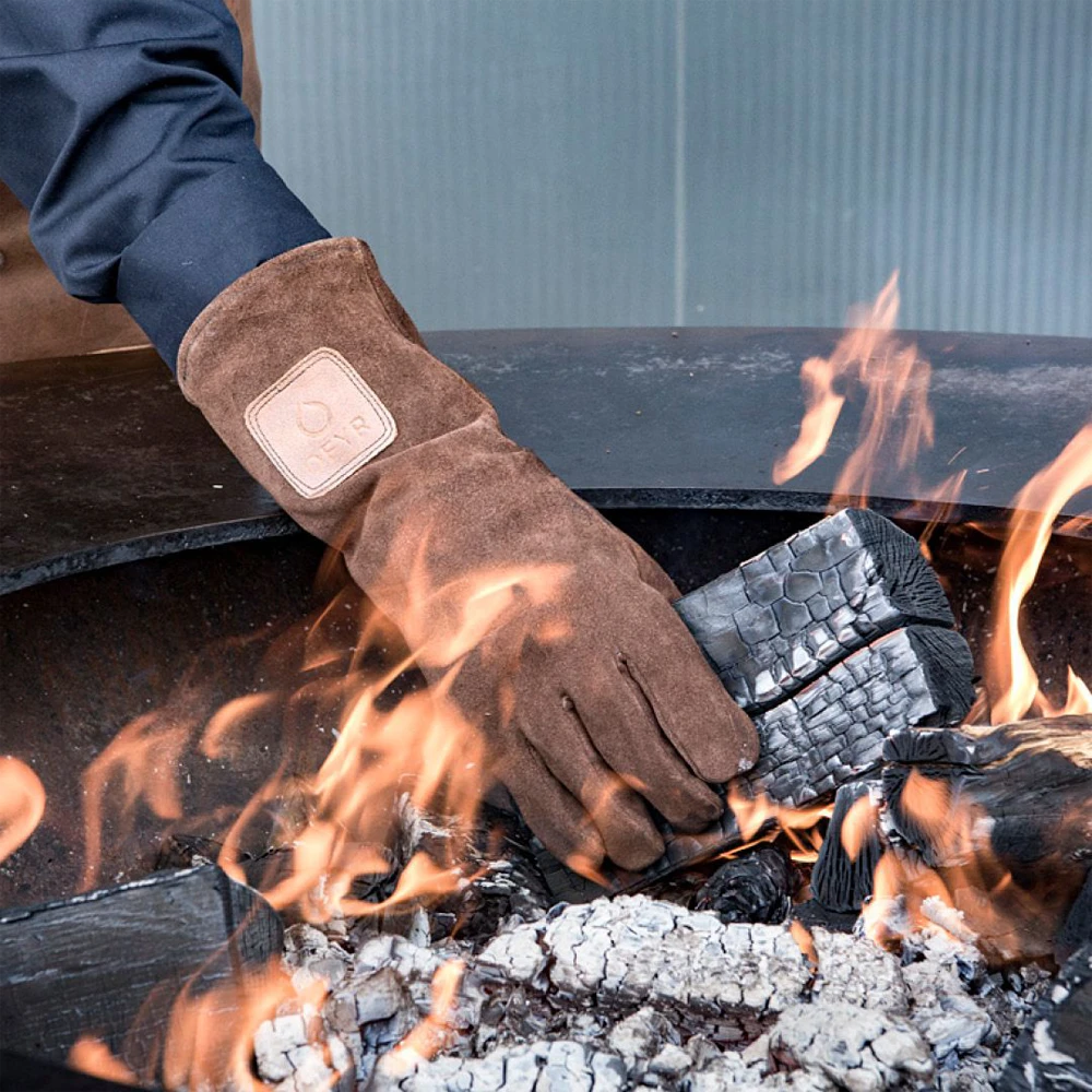 Iedere ambitieuze chef heeft een paar hittebestendige handschoenen nodig. De OFYR Gloves zijn gemaakt van suède en hebben een hittebestendigheid tot 250 ̊C. Hierdoor zijn de handschoenen ideaal voor het koken boven het open vuur van het OFYR kooktoestel of voor het bedienen van hete accessoires. Verkrijgbaar in bruin en zwart suède.