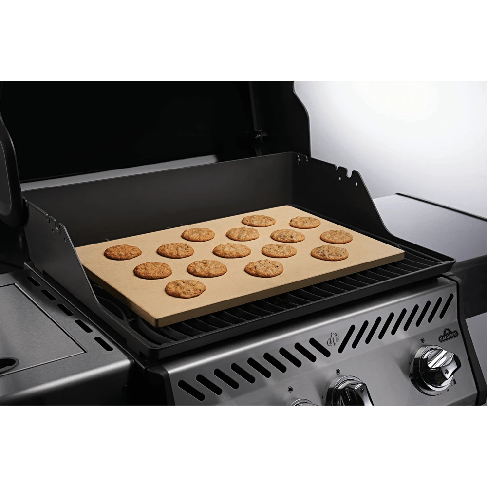 De rechthoekige baksteen van Napoleon is uitermate geschikt voor grillen en bakken. De poreuze steen onttrekt vocht uit uw pizzakorst, gebak en brood, voor een knapperig en licht resultaat. Het natuurlijke oppervlak behoudt geen voedselgeuren en -smaken, waardoor de geur van de knoflookpizza van vorige week niet in de thuis bereide honingkoekjes van deze week te merken is. Net zoals met uw favoriete gietijzeren braadpan zal deze steen na verloop van tijd inbakken, waardoor een antiaanbaklaag ontstaat en hij effectiever wordt. Wij adviseren uw rechthoekige baksteen met de hand te wassen met warm water nadat hij volledig is afgekoeld. Vermijd zeepsop en schrobben.